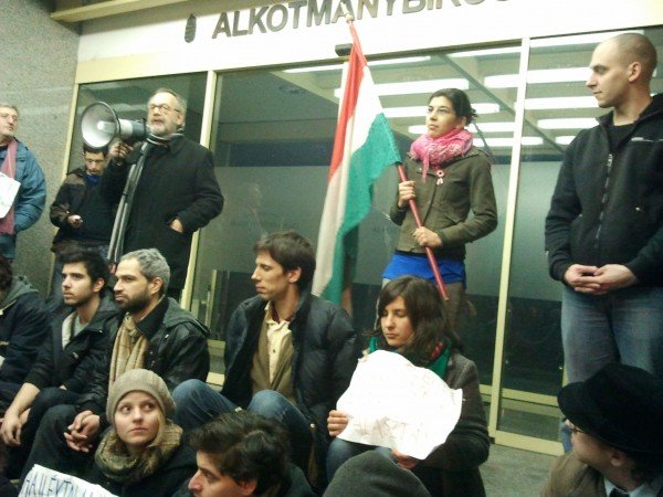 A hír hallatán azonnal a Lendvay utcába siettem, ahol kívülről csak egy molinó jelezte, hogy ez a nap nem olyan mint a többi. A székház bejáratánál üldögéltek a tüntetők, nyakukban kézzel írt táblákkal. Felettük a FIDESZ zászló mellett “Az alkotmány nem játék” felirat fogadta az épületbe igyekvőket. Egyikük elmondta, hogy az alaptörvény negyedik módosítása miatt választották a tiltakozás ezen formáját. Mögöttük és szemben velük rendőrök várták a fejleményeket, de intézkedni nem intézkedhettek, mert a foglalók magánterületen voltak. Csak akkor avatkozhattak volna közbe, ha tulajdonos a jegyzőtől kér egy birtokvédelmi határozatot. De ezt a FIDESZ nem tette meg. Nem a rendőrökkel akarták elvitetni a magánlaksértőket és a balhét. Ezt rábízták a jól bevált focidrukkerekre, akiknek amúgy is a bögyükben vannak a tiltakozó ifjak. Nem tetszik nekik, hogy az egyetemisták a stadionokra szánt milliárdokat inkább a kiművelt emberfőkre költenék. Való igaz, hogy ezeknek az észérvekből hamar kifogyó kigyúrt kopaszoknak sosem volt igénye a kiművelődésre.